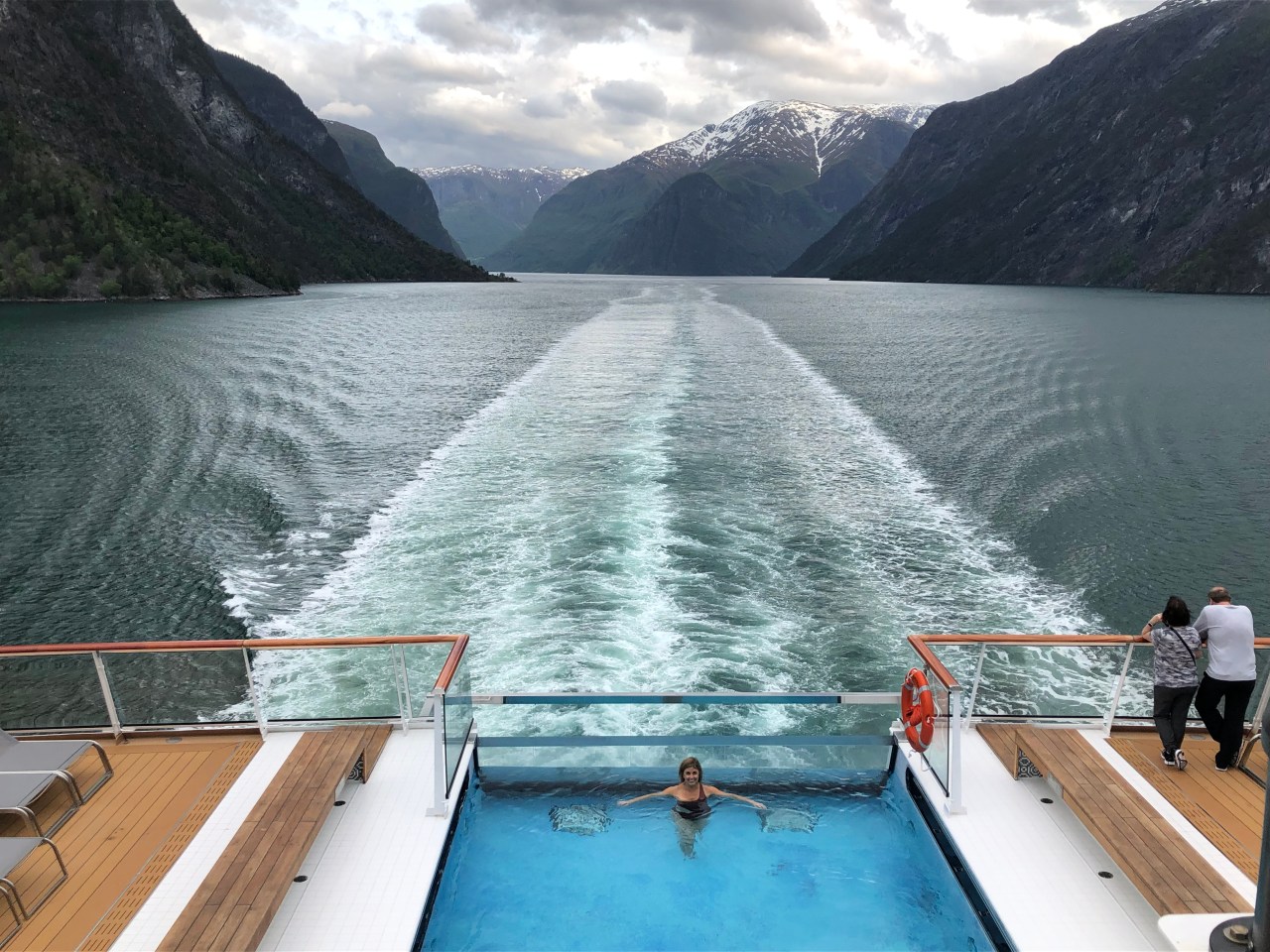 We snuck in our fjord pics at the outdoor pool before settling in for an Italian dinner.