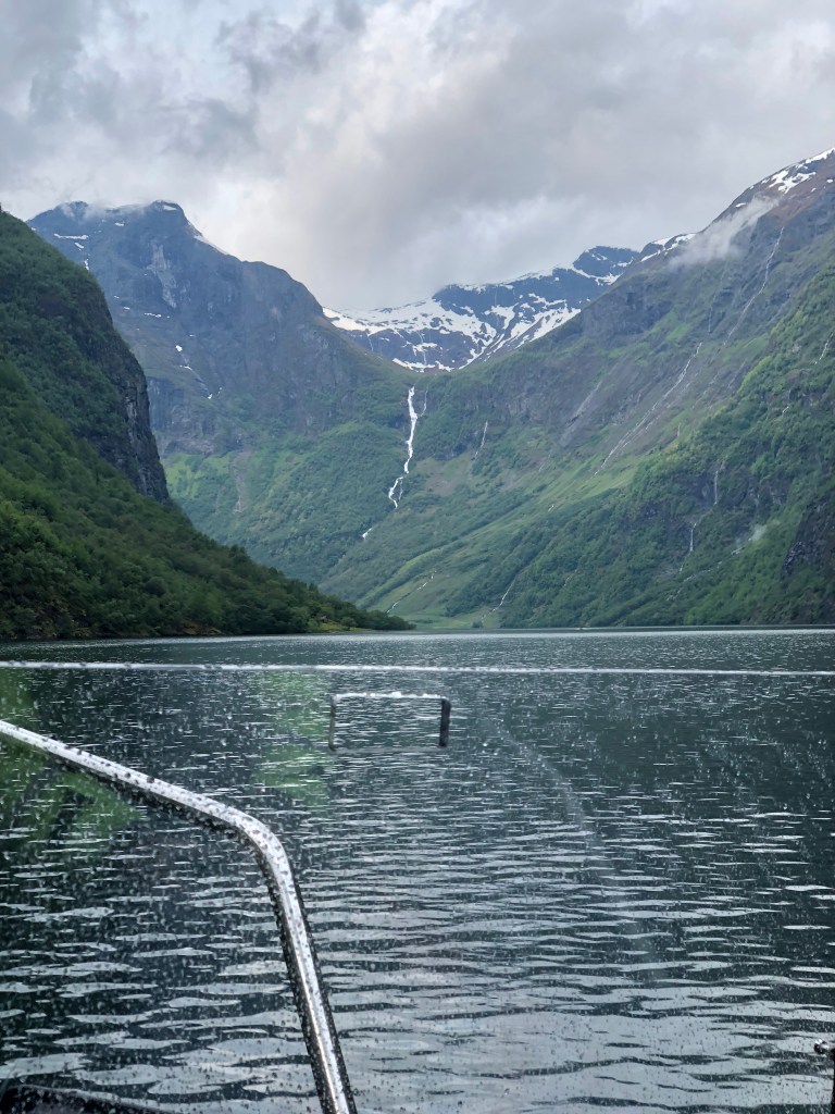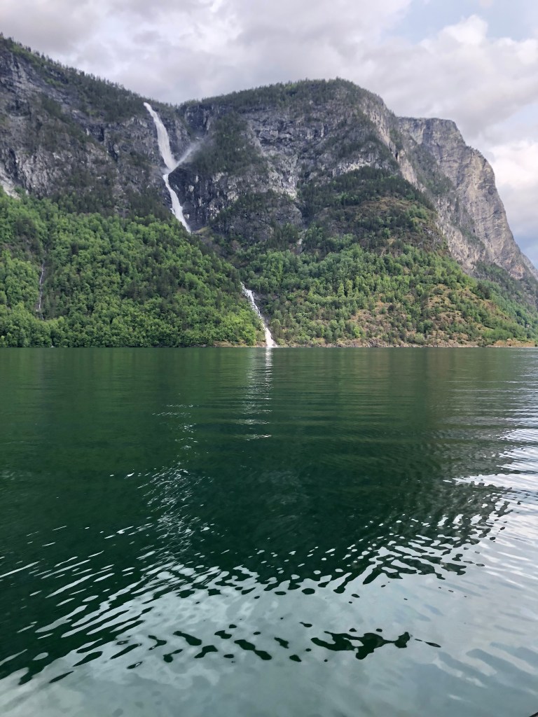We sailed through the Aurlandsfjord and Nærøyfjord on our trip and even got up close and personal with a waterfall. And by that, I mean he drove us right into it!