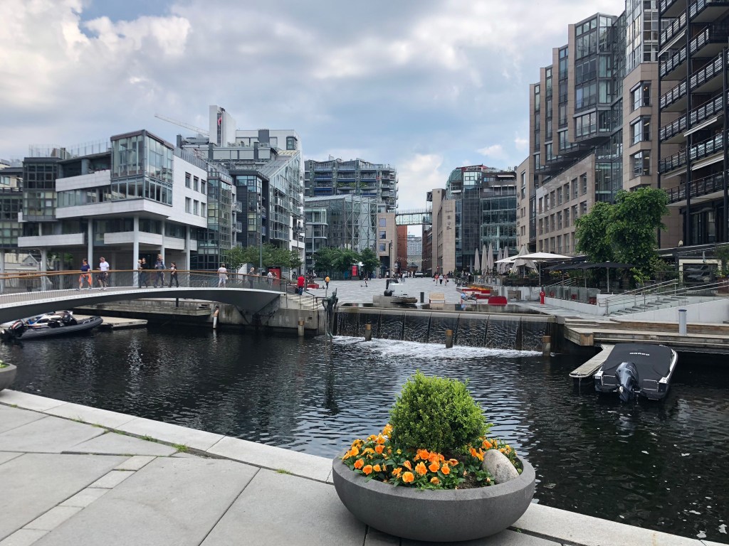 Keeping on the architecture theme, the following morning, we explored the neighborhood of Aker Brygge. If I ever lived in Oslo, this would be where I would want to live. There are shops and cafes right along the water and each condo building has its own unique architectural design. It retained its industrial feel while also feeling very modern, much like the Barcode neighborhood did to me the evening before. In addition to access to the marina, the Aker Brygge neighborhood also features a city beach.