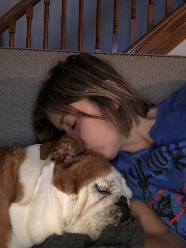 In an instant, I realized how much of my life revolves around Mabel. When Adam and I made the decision to not have human children, Mabel really became our version of a kid. We went out to dinner and recanted stories about her. We planned vacations where we could take her along. While she counted on us for food and shelter, I counted on her so much that I couldn’t fathom what life would be like so suddenly without her. While my rationale brain understands that Mabel is getting older and will not live forever in my heart of hearts, I really believed it should not be her time. I could dedicate a whole post on why I no longer practice the religion of which I was raised, but that night I spent a lot of time praying that God wouldn’t take her from me. That if he’d just give me more time, I would find some way to pay it back to the universe. I still held tight to her lamb and favorite blanket as I tried to get some sleep.